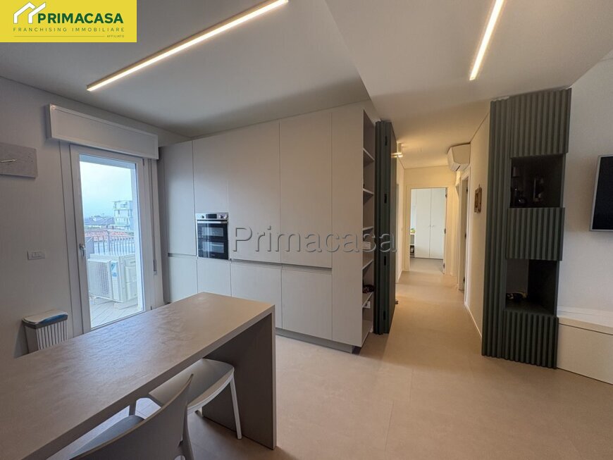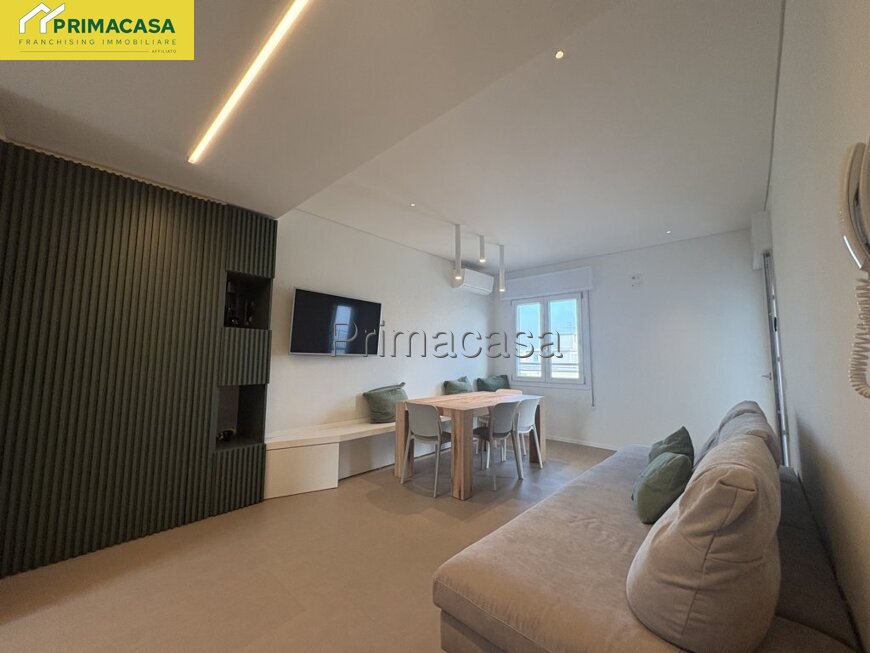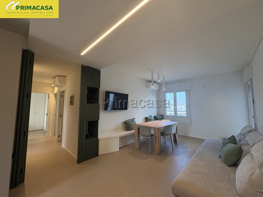 Vendesi attico di 100 mq completamente ristrutturato a nuovo. Una proprietà esclusiva, caratterizzata da finiture di altissimo livello e consegnata totalmente arredata. L’immobile si distingue per gli spazi generosi, la luminosità e le finiture di pregio ed è composto da un’ampia zona living con angolo cottura e accesso a doppia terrazza, terrazzo con vista mare, tre camere matrimoniali, due bagni moderni, finestrati e completi di tutti i sanitari, posto auto coperto.