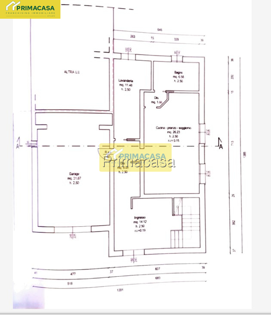 - Centrale termica con con caldaia e vano tecnico adibito a zona stiro.